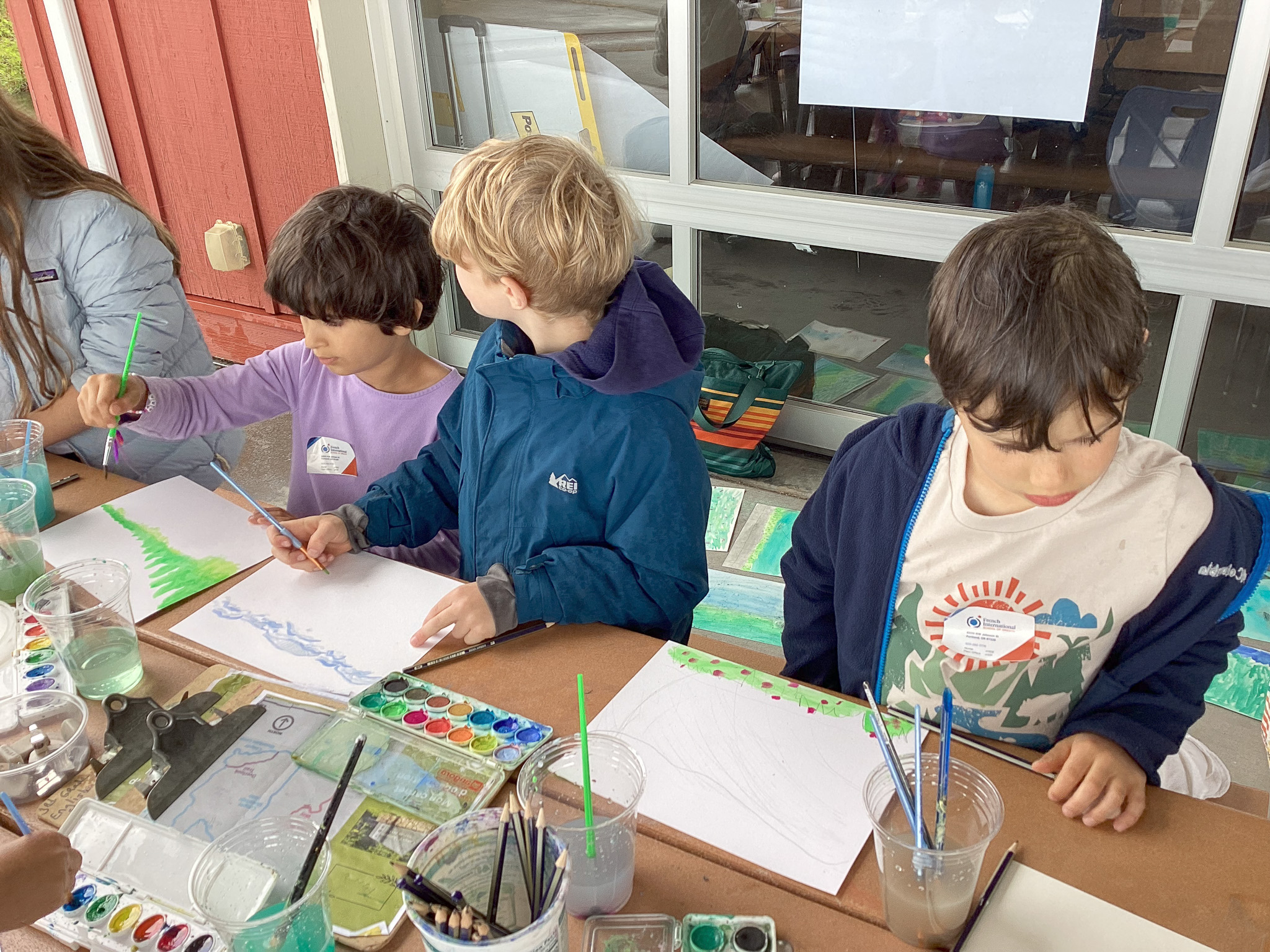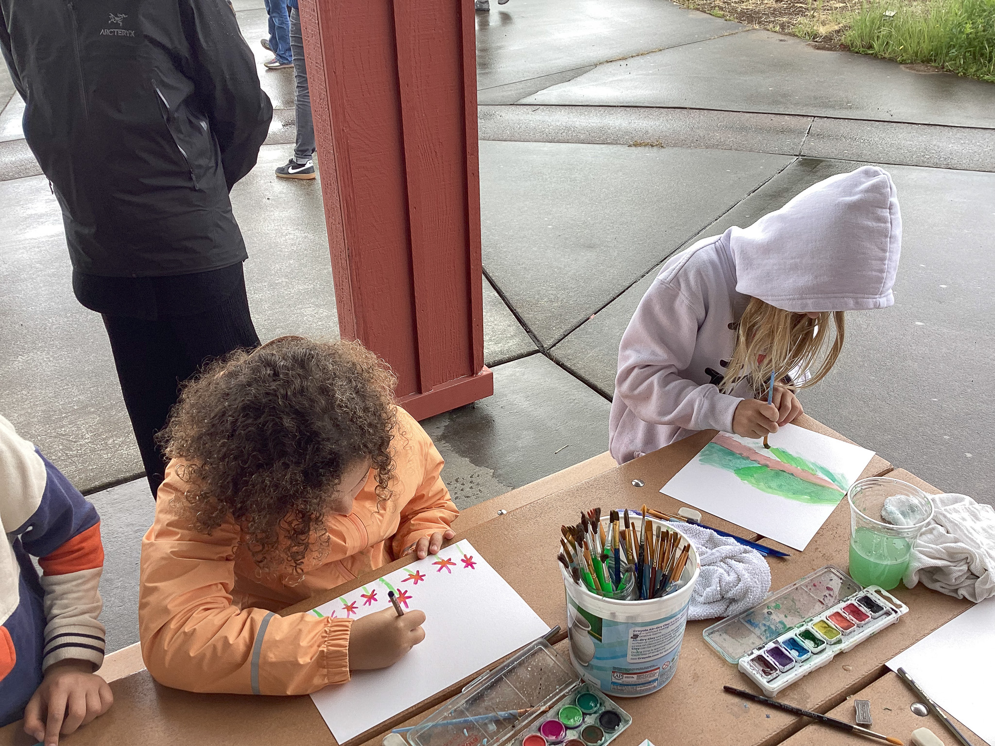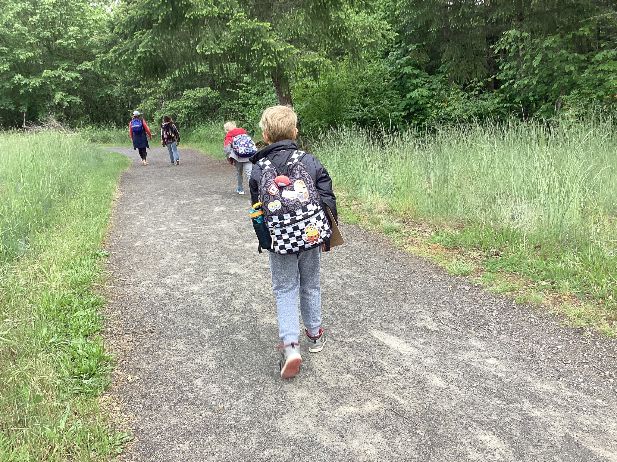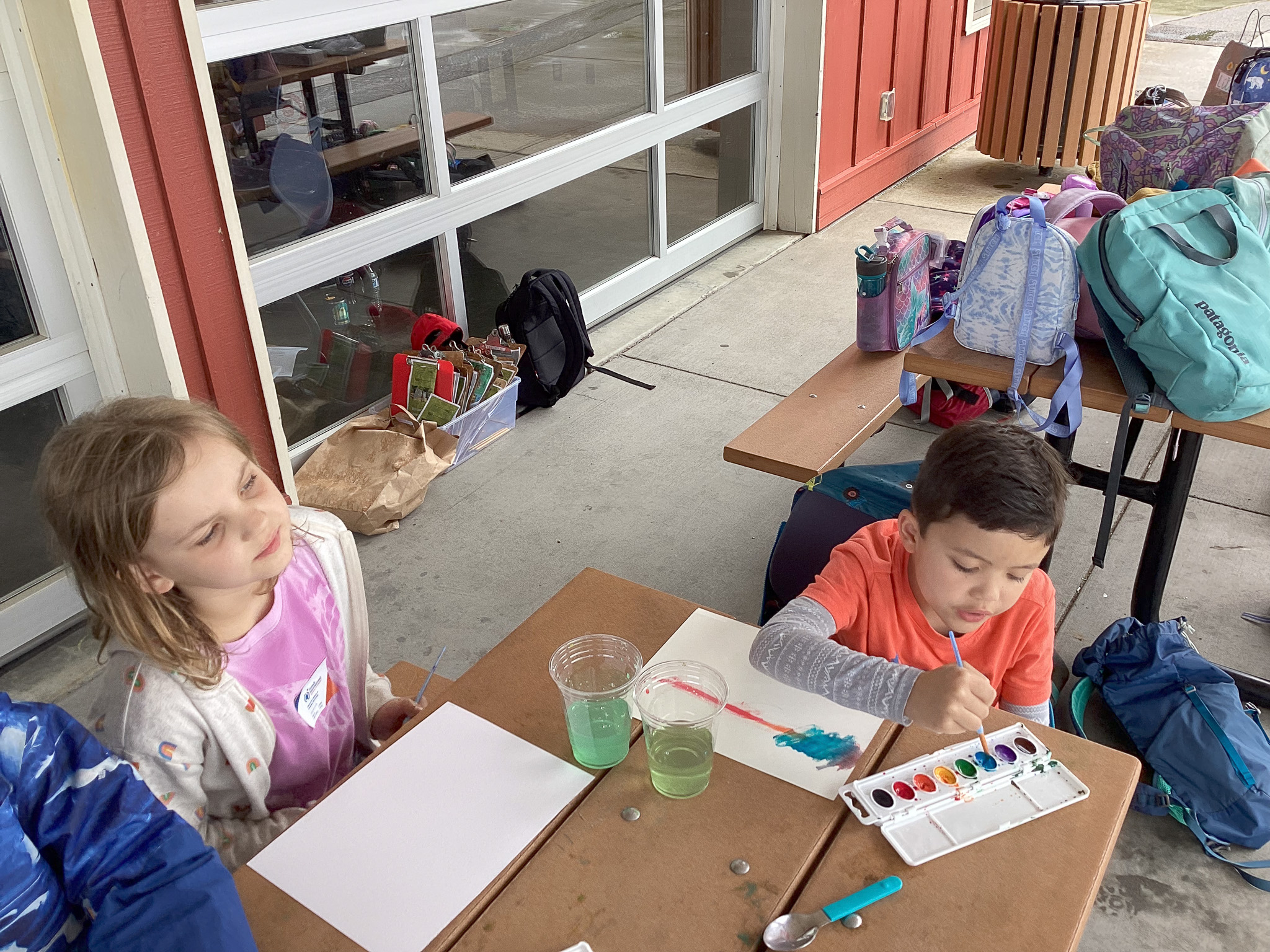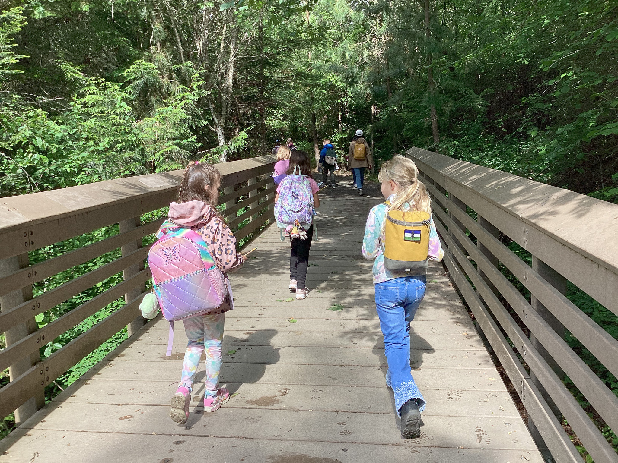 Second graders headed off campus to Cooper Mountain Nature Park for their field studies. After they arrived at the park, they went on a hike together. They looked for different plants and animals, trying to identify them with a scavenger hunt. They had lunch and spent time playing. In the afternoon, they painted the landscapes of the park with art teacher, Alex.
