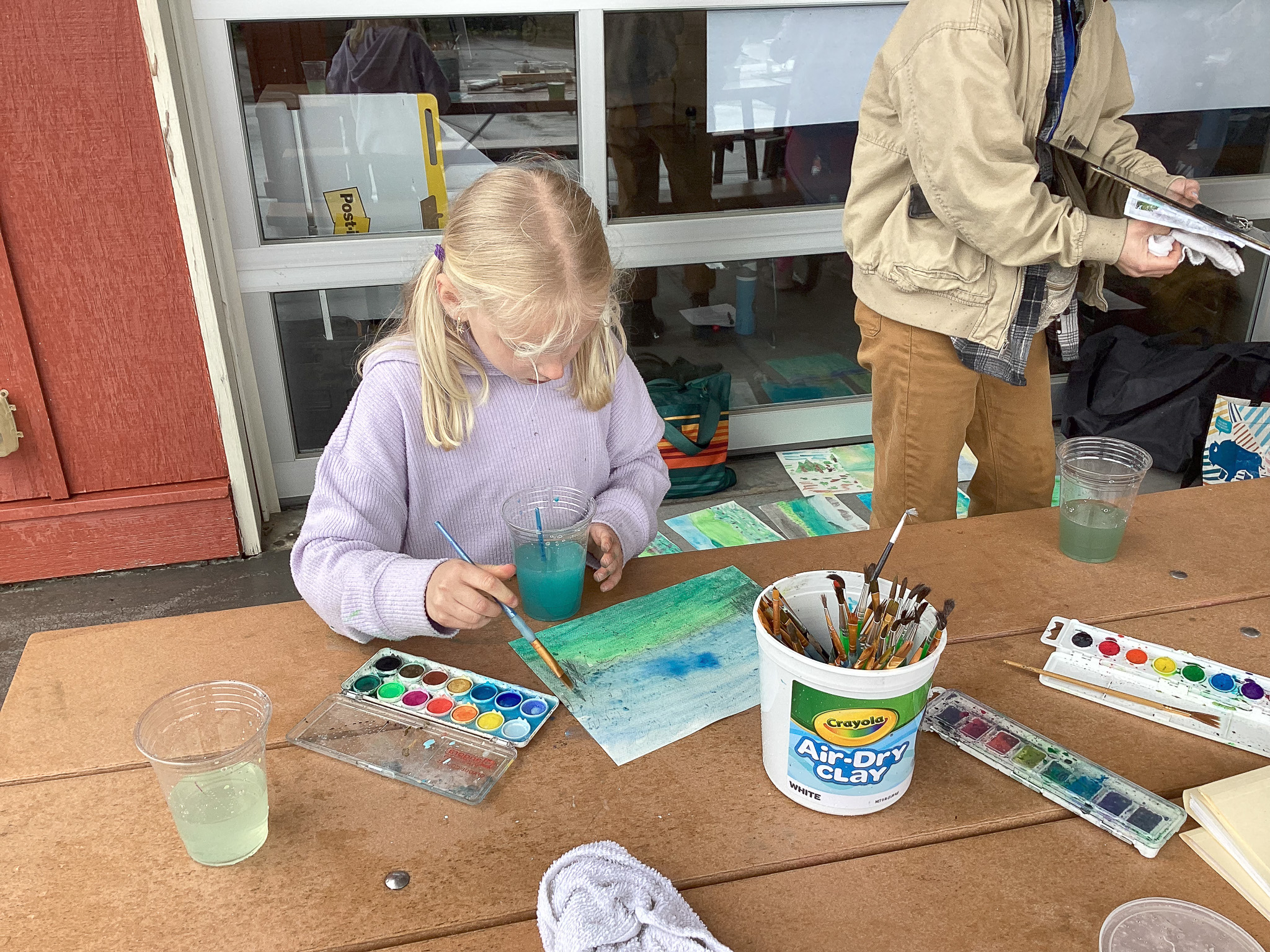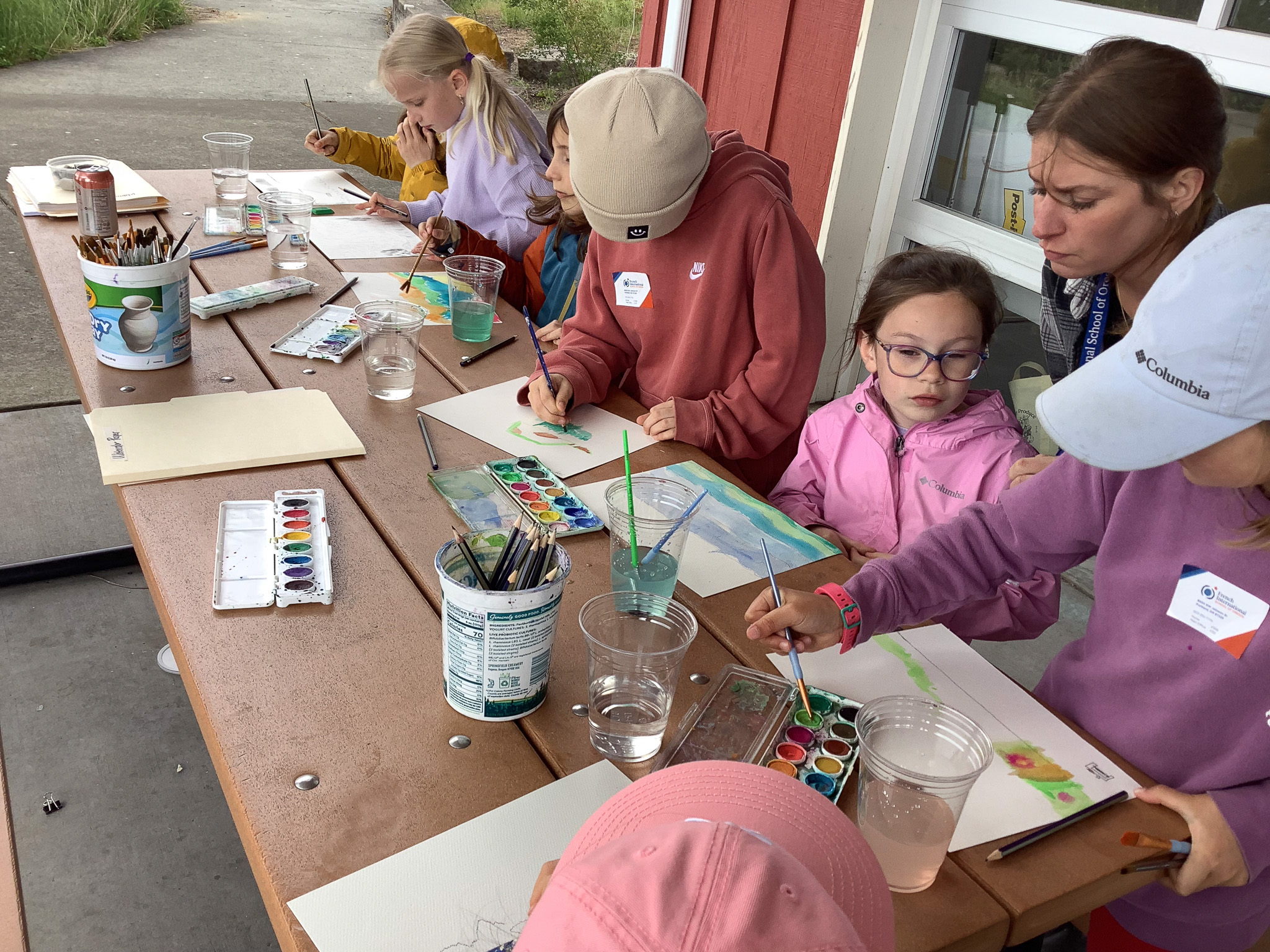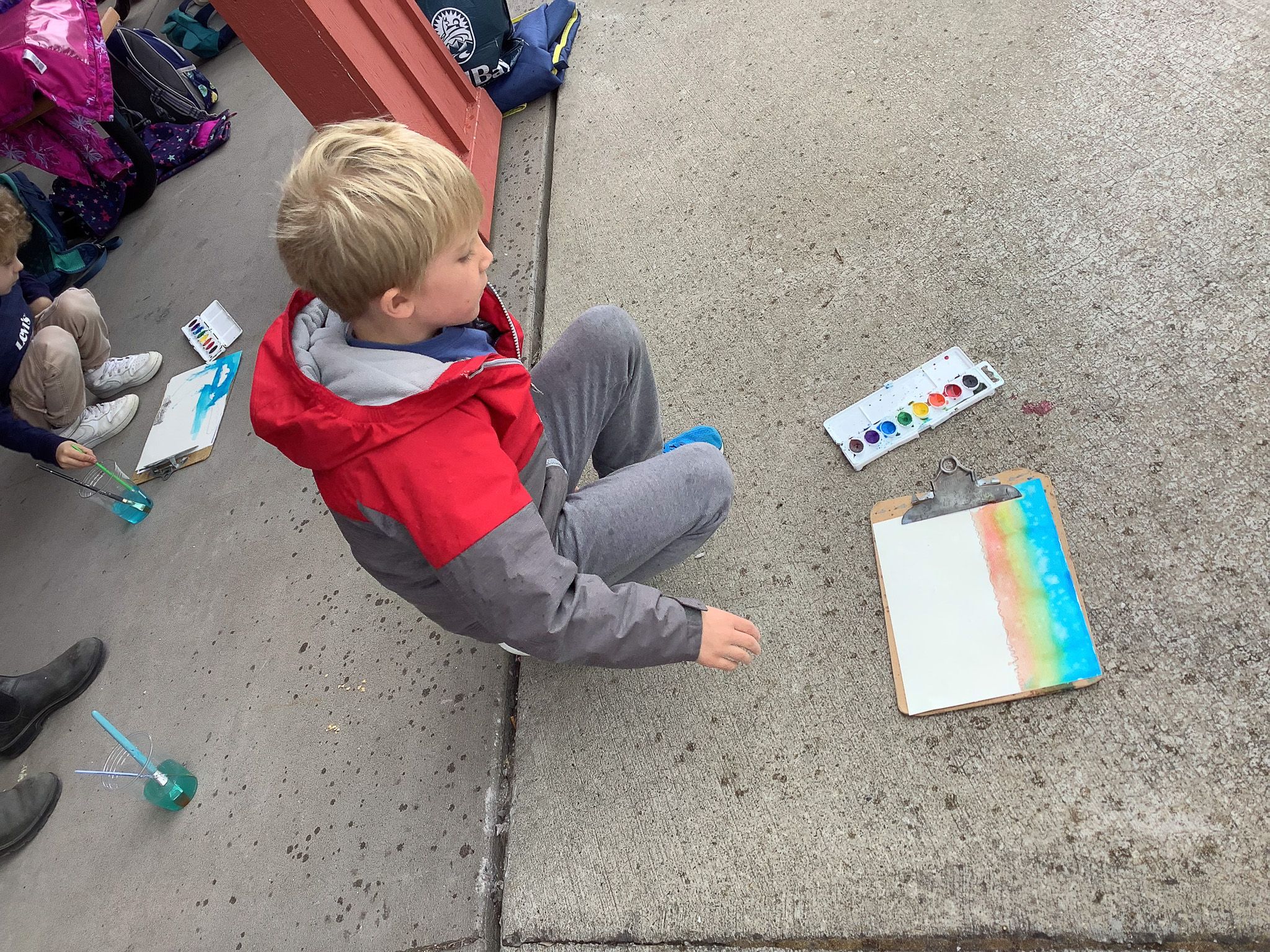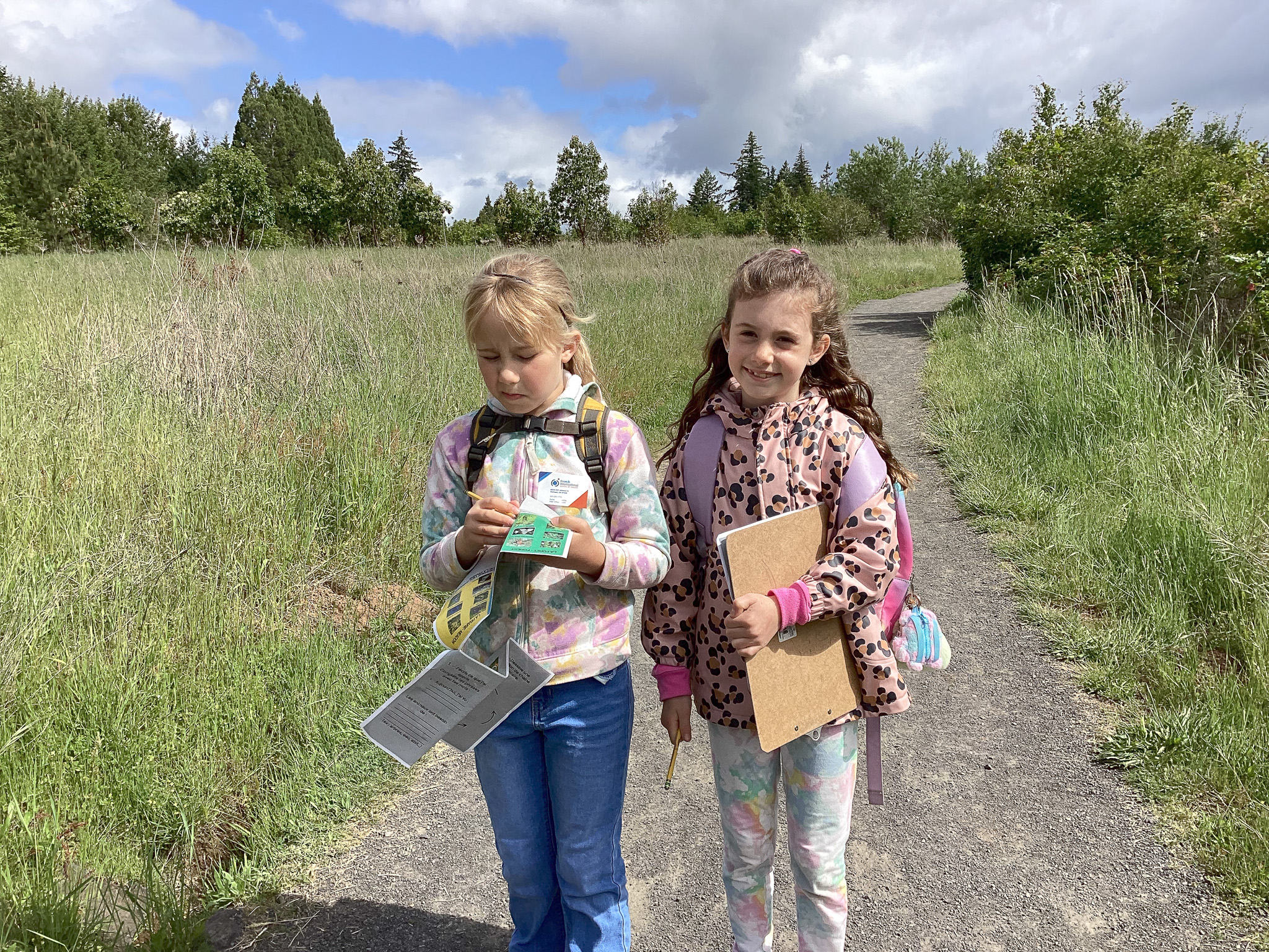 Second graders headed off campus to Cooper Mountain Nature Park for their field studies. After they arrived at the park, they went on a hike together. They looked for different plants and animals, trying to identify them with a scavenger hunt. They had lunch and spent time playing. In the afternoon, they painted the landscapes of the park with art teacher, Alex.