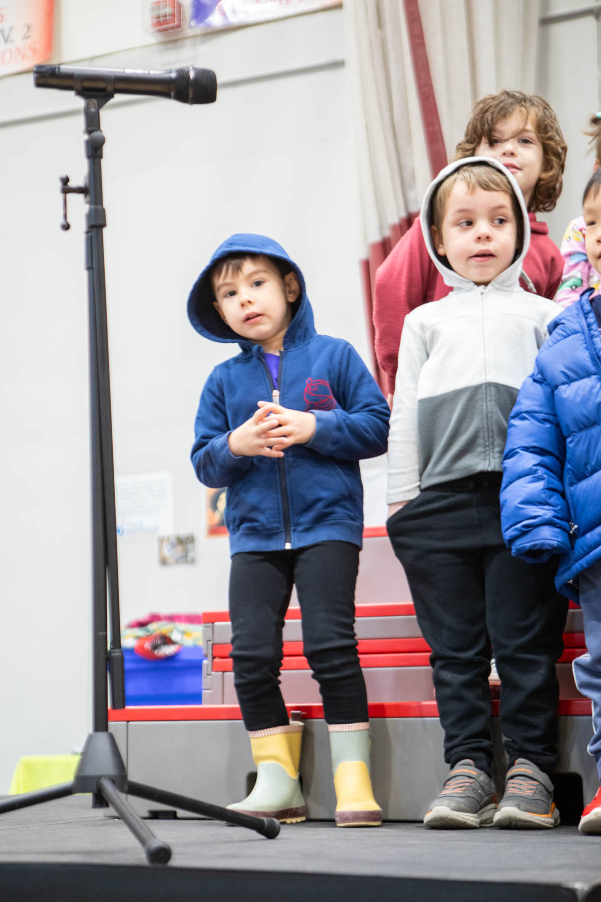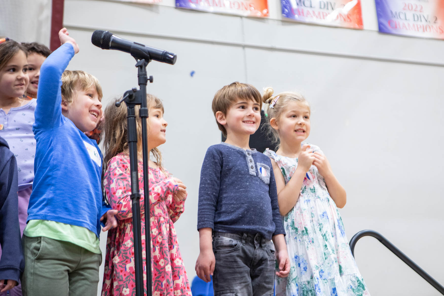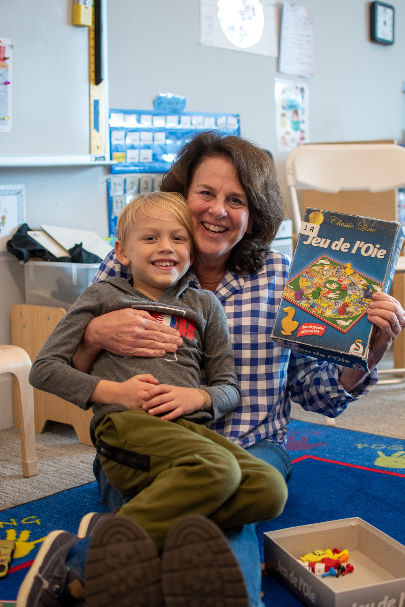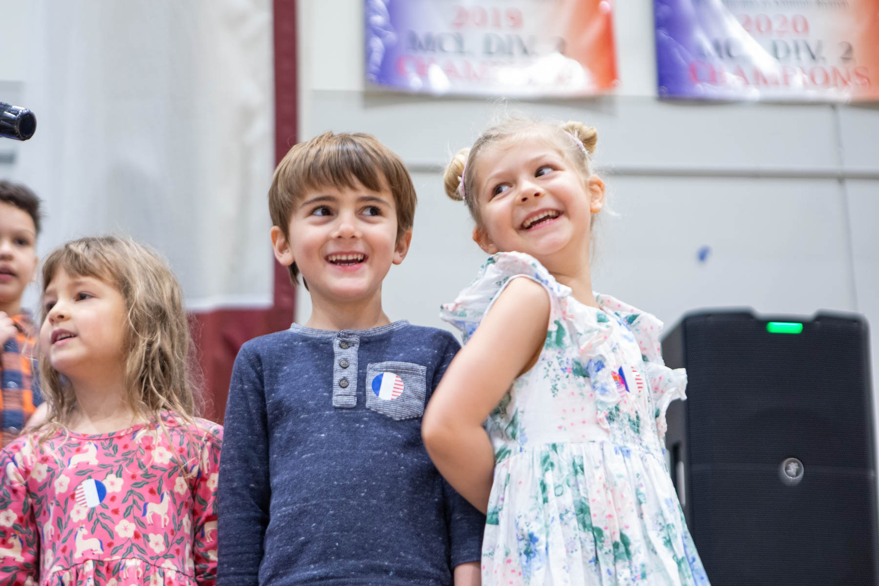 The event was organized into two sessions to accommodate all attendees. The morning session was for the guests of the Maternelle students. After settling into the gym, the preschool, pre-k, and kindergarten classes sang two songs each: one in English and one in French. Following the musical performances, grandparents and special friends visited their students in the classrooms. Each class offered activities tailored to the age group, including playground time, games, songs, and opportunities to learn more about what students do every day.