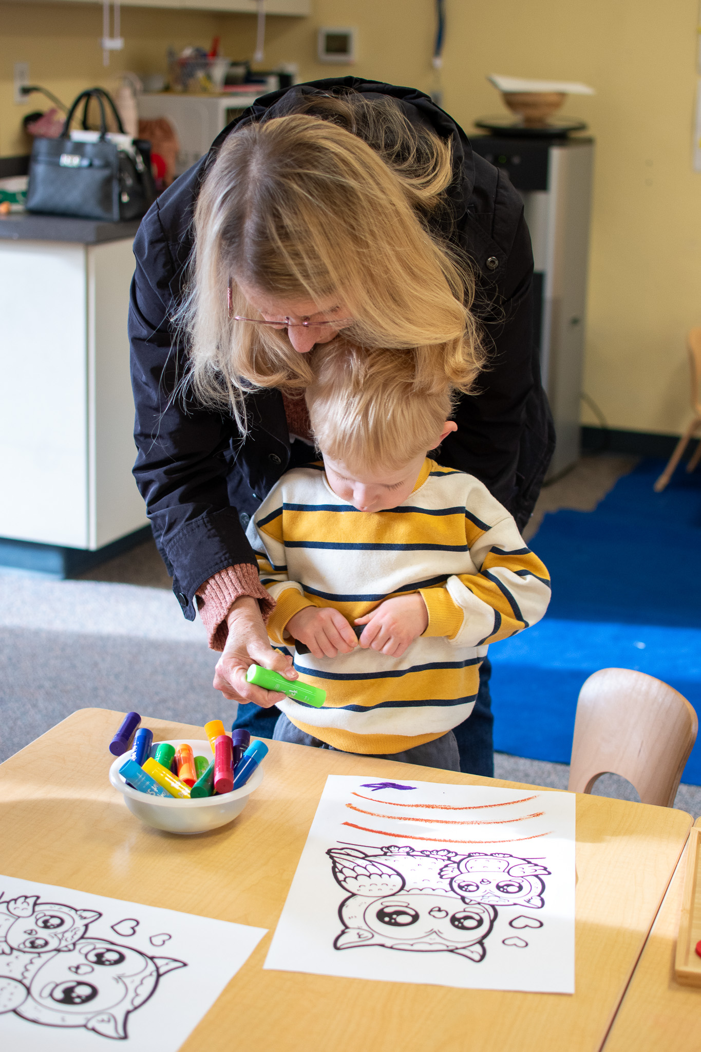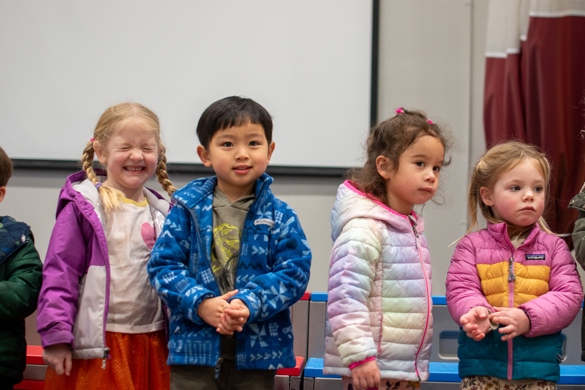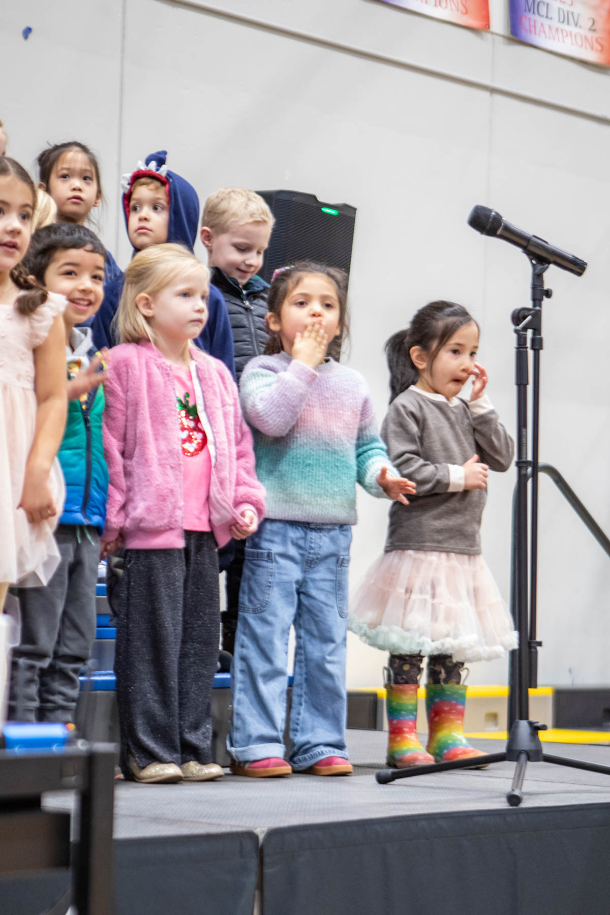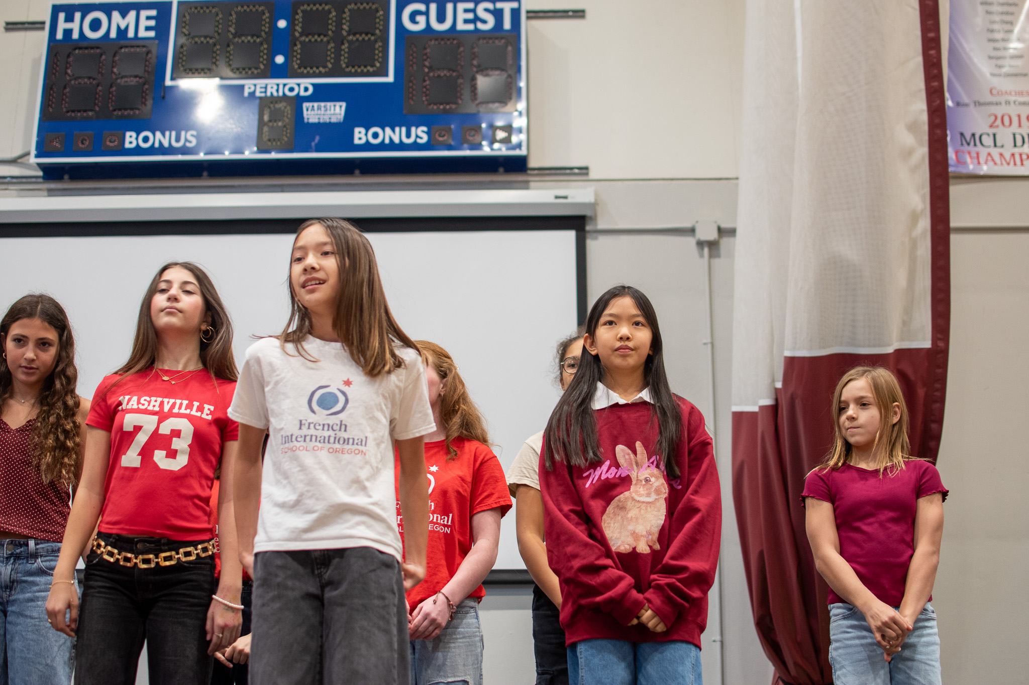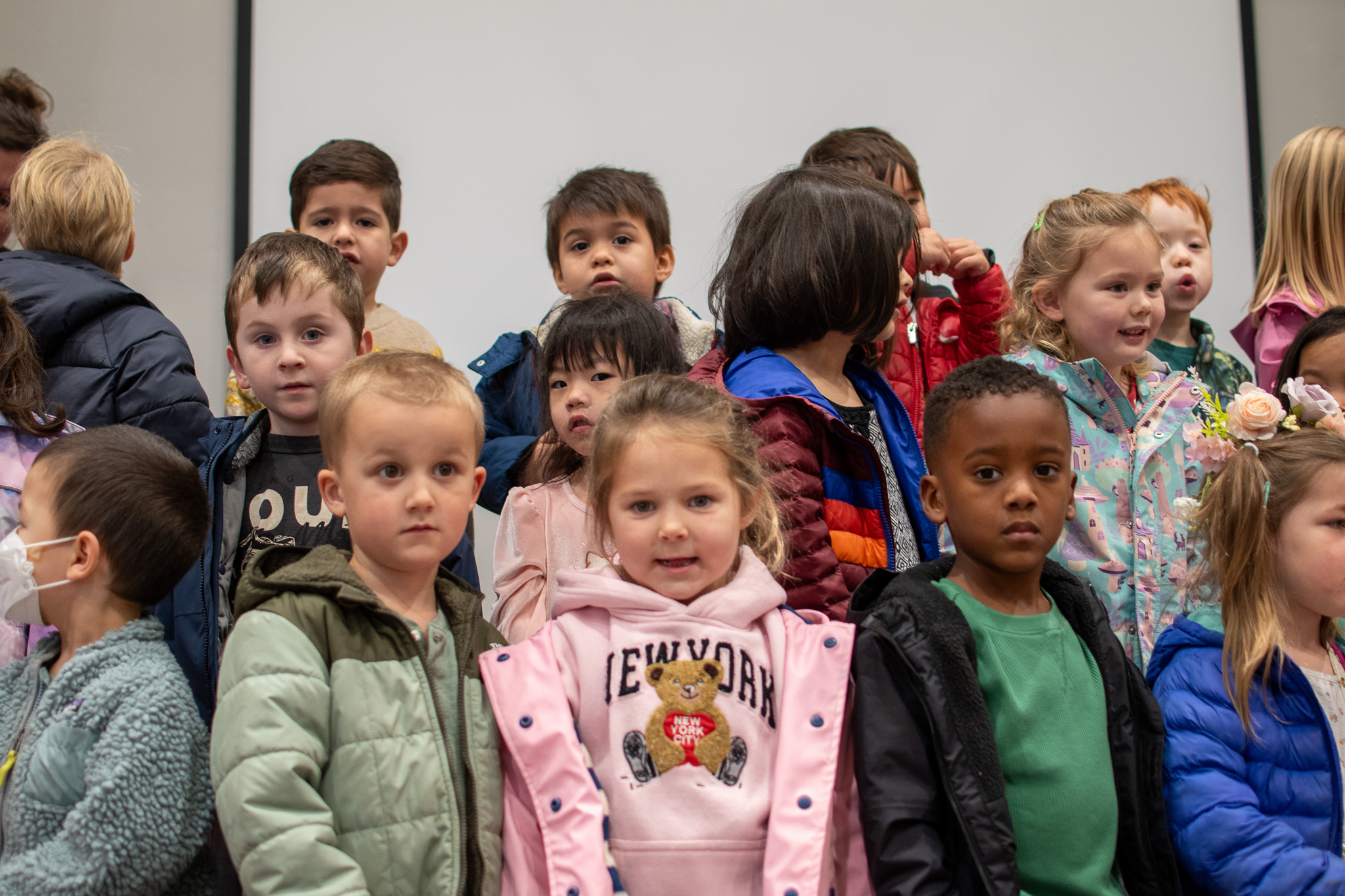 The event was organized into two sessions to accommodate all attendees. The morning session was for the guests of the Maternelle students. After settling into the gym, the preschool, pre-k, and kindergarten classes sang two songs each: one in English and one in French. Following the musical performances, grandparents and special friends visited their students in the classrooms. Each class offered activities tailored to the age group, including playground time, games, songs, and opportunities to learn more about what students do every day.