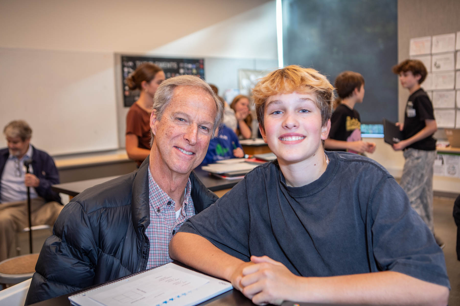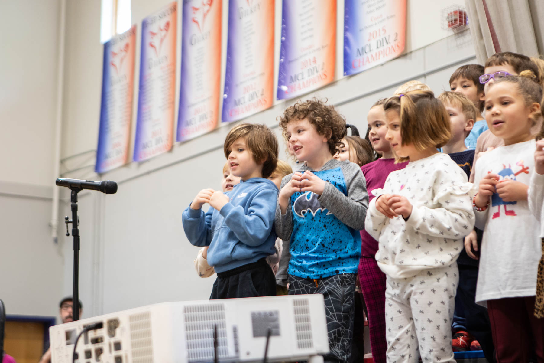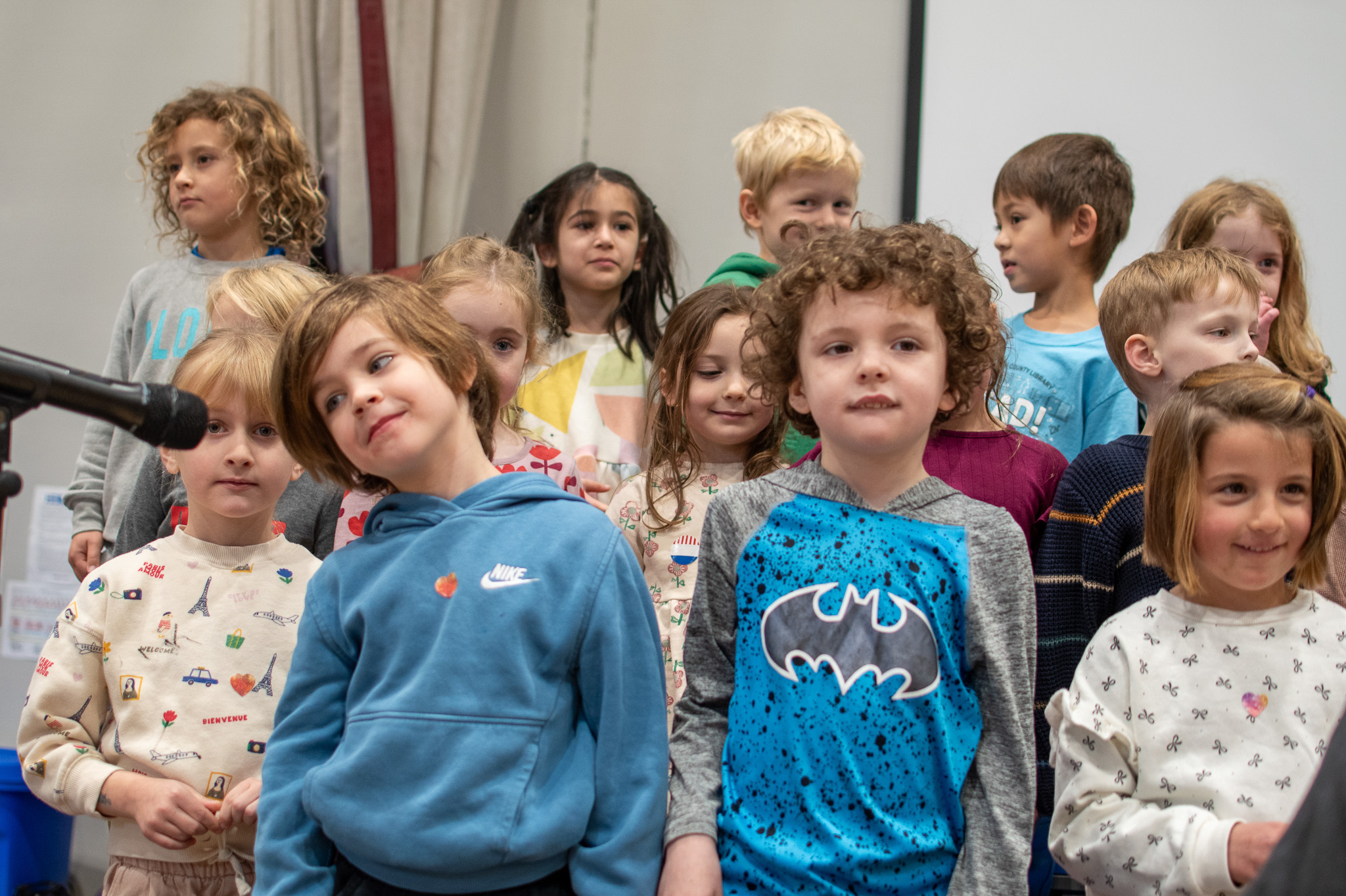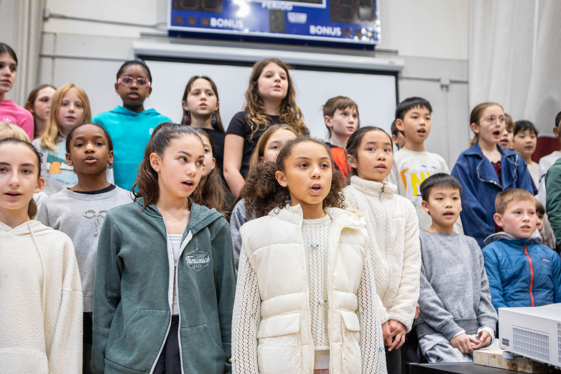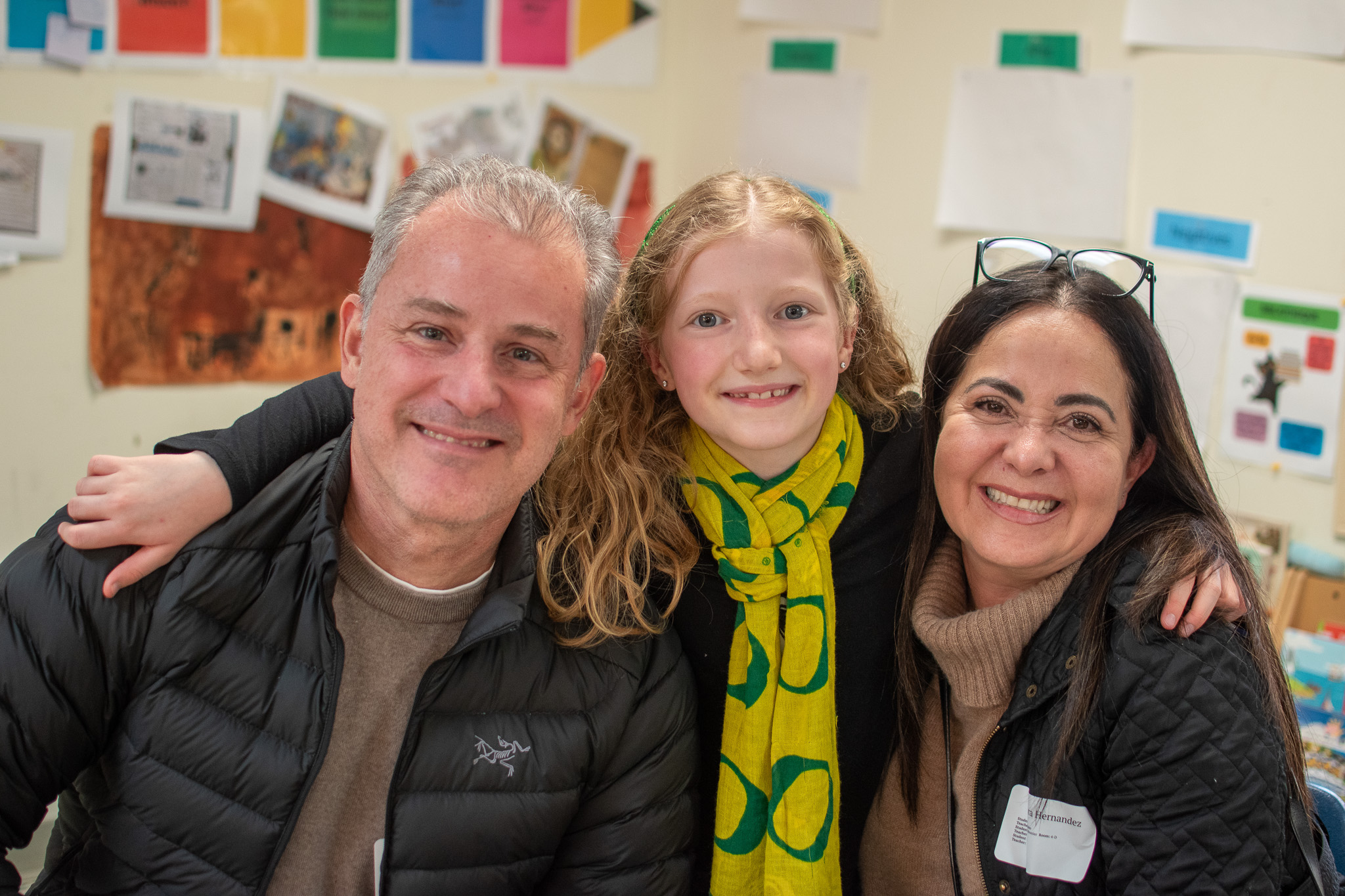 The second session of the day was for guests of the Lower and Middle School students. Again, everyone started in the gym, enjoying collaborative music performances from the first through third graders and fourth through fifth graders, along with songs from the Middle School Choir Club and a preview of the eighth-grade musical. After the performances, guests experienced the school in action. Classes offered various activities depending on the grade, including games, art projects, French word quizzes, and a chance to see what students have been working on.