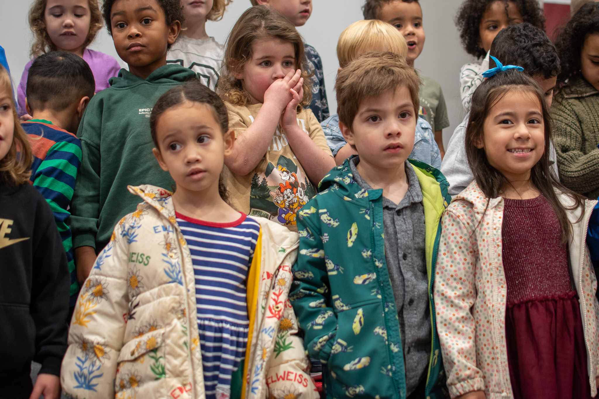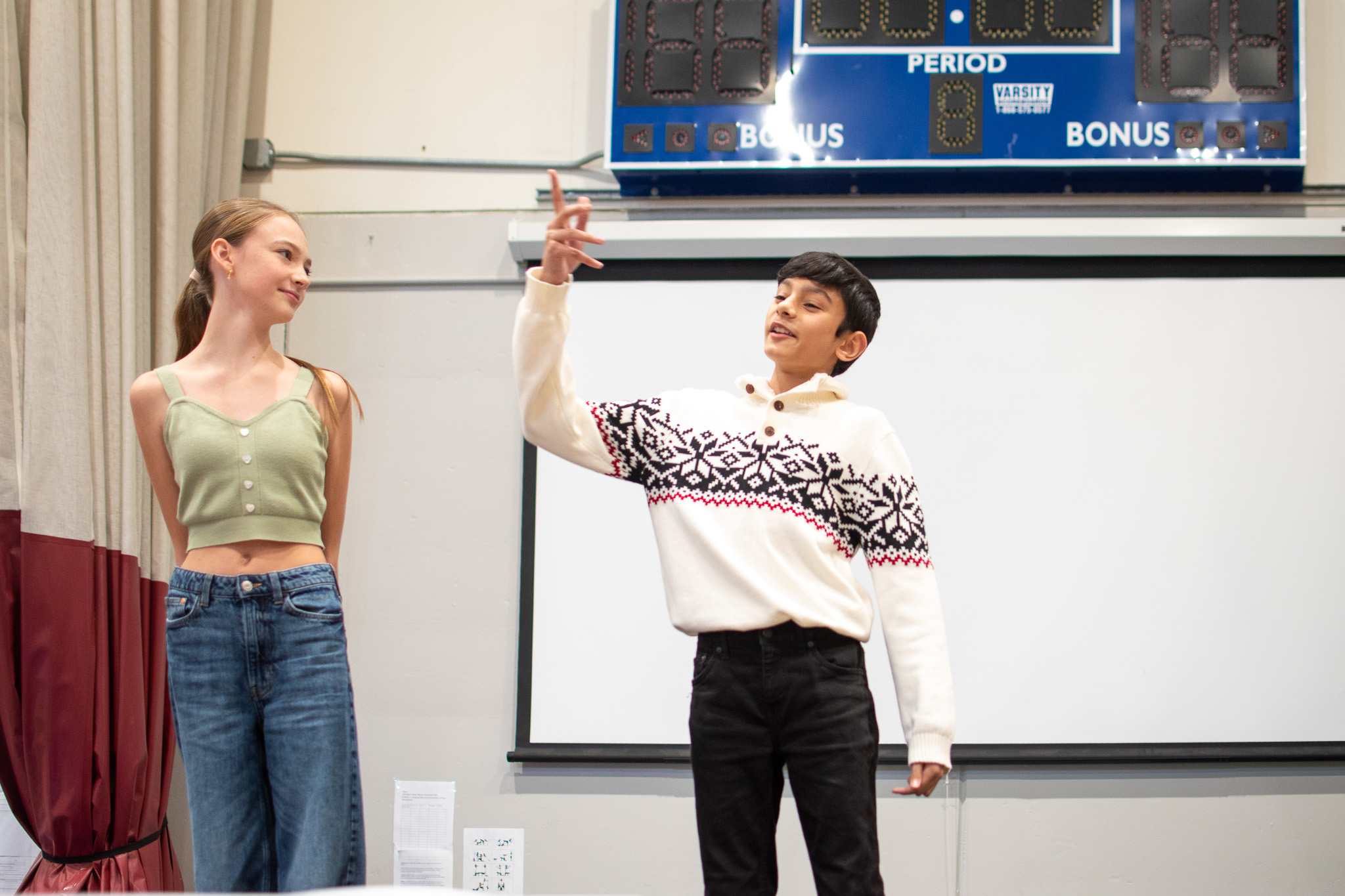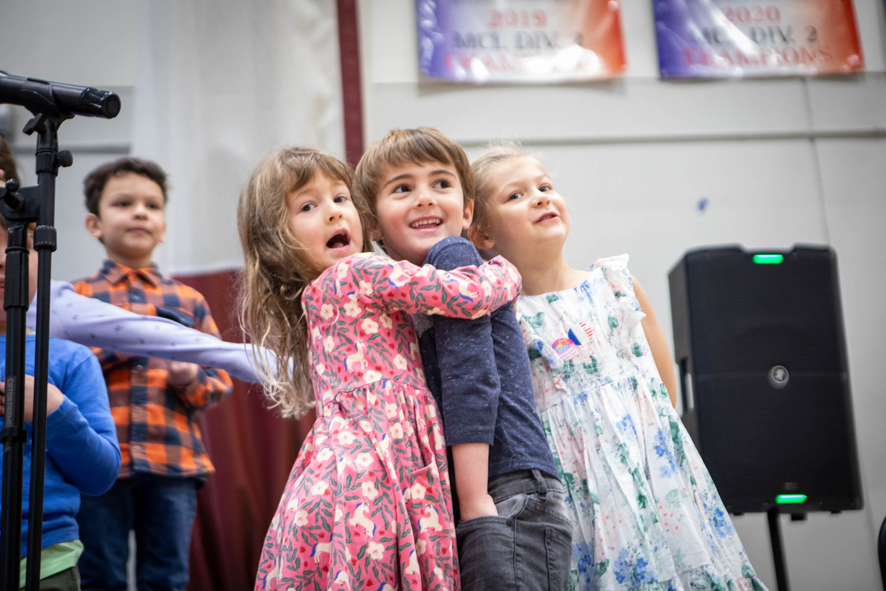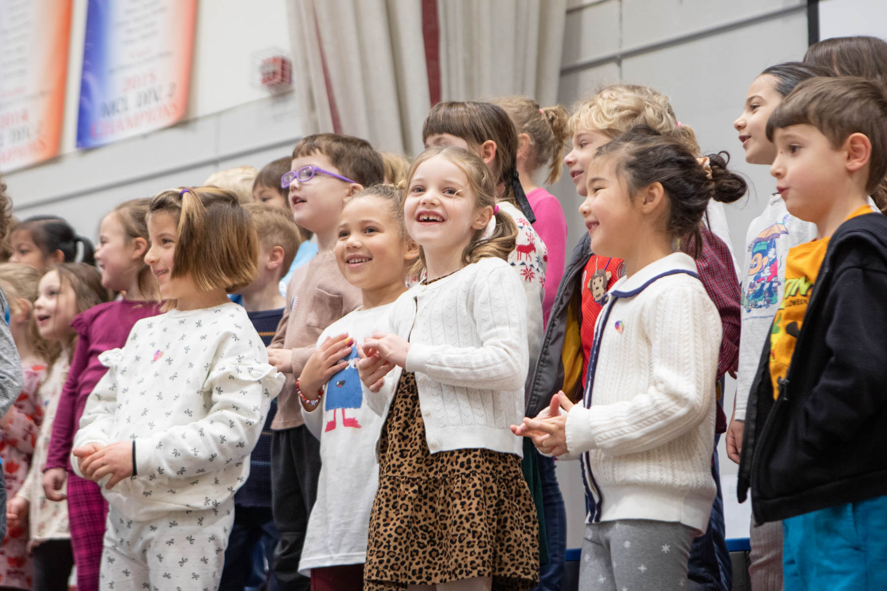 The second session of the day was for guests of the Lower and Middle School students. Again, everyone started in the gym, enjoying collaborative music performances from the first through third graders and fourth through fifth graders, along with songs from the Middle School Choir Club and a preview of the eighth-grade musical. After the performances, guests experienced the school in action. Classes offered various activities depending on the grade, including games, art projects, French word quizzes, and a chance to see what students have been working on.