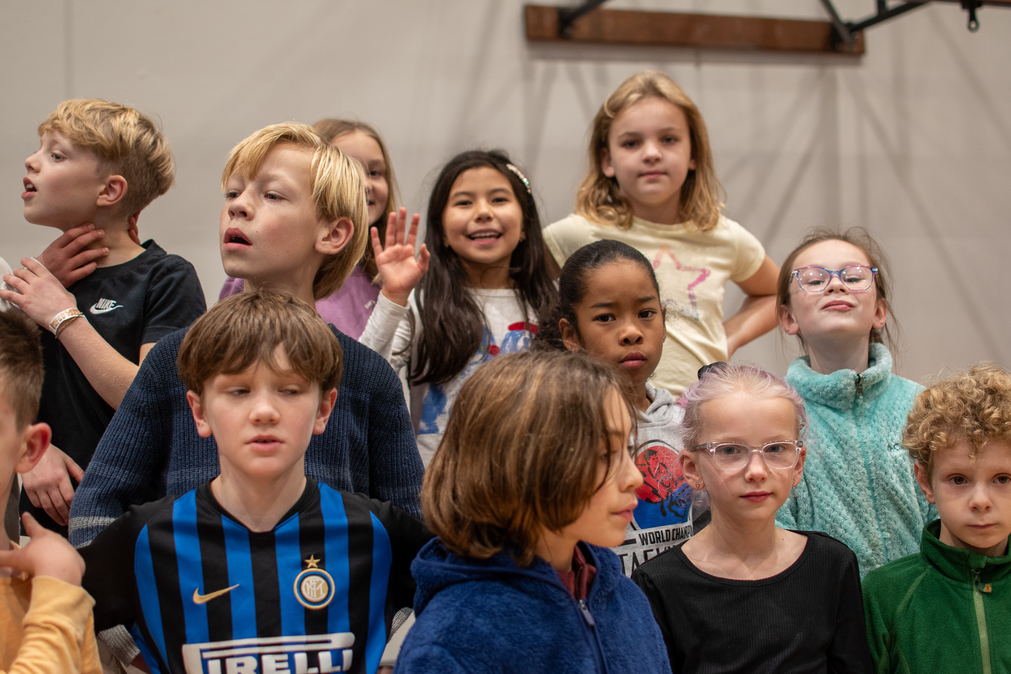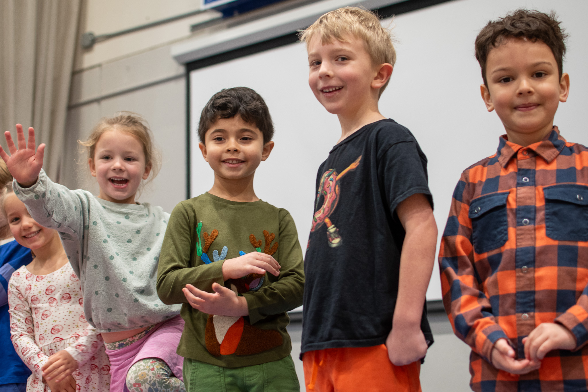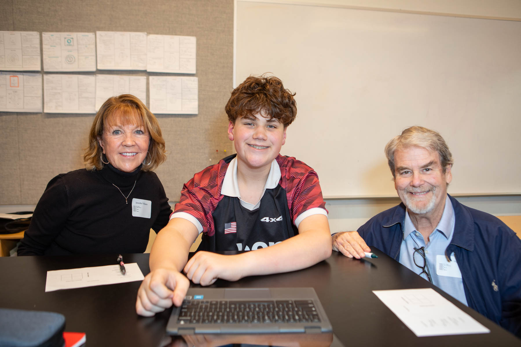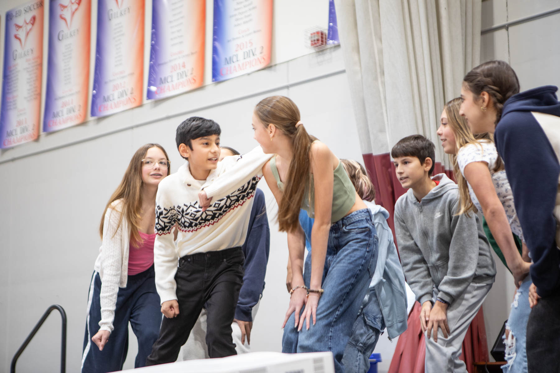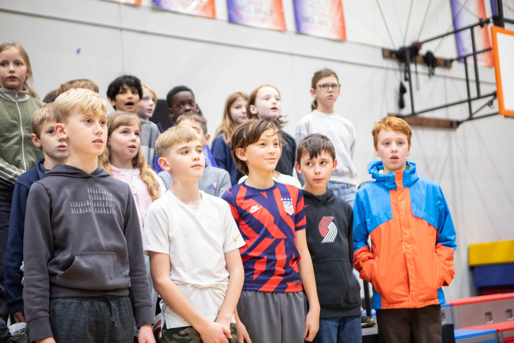 The second session of the day was for guests of the Lower and Middle School students. Again, everyone started in the gym, enjoying collaborative music performances from the first through third graders and fourth through fifth graders, along with songs from the Middle School Choir Club and a preview of the eighth-grade musical. After the performances, guests experienced the school in action. Classes offered various activities depending on the grade, including games, art projects, French word quizzes, and a chance to see what students have been working on.