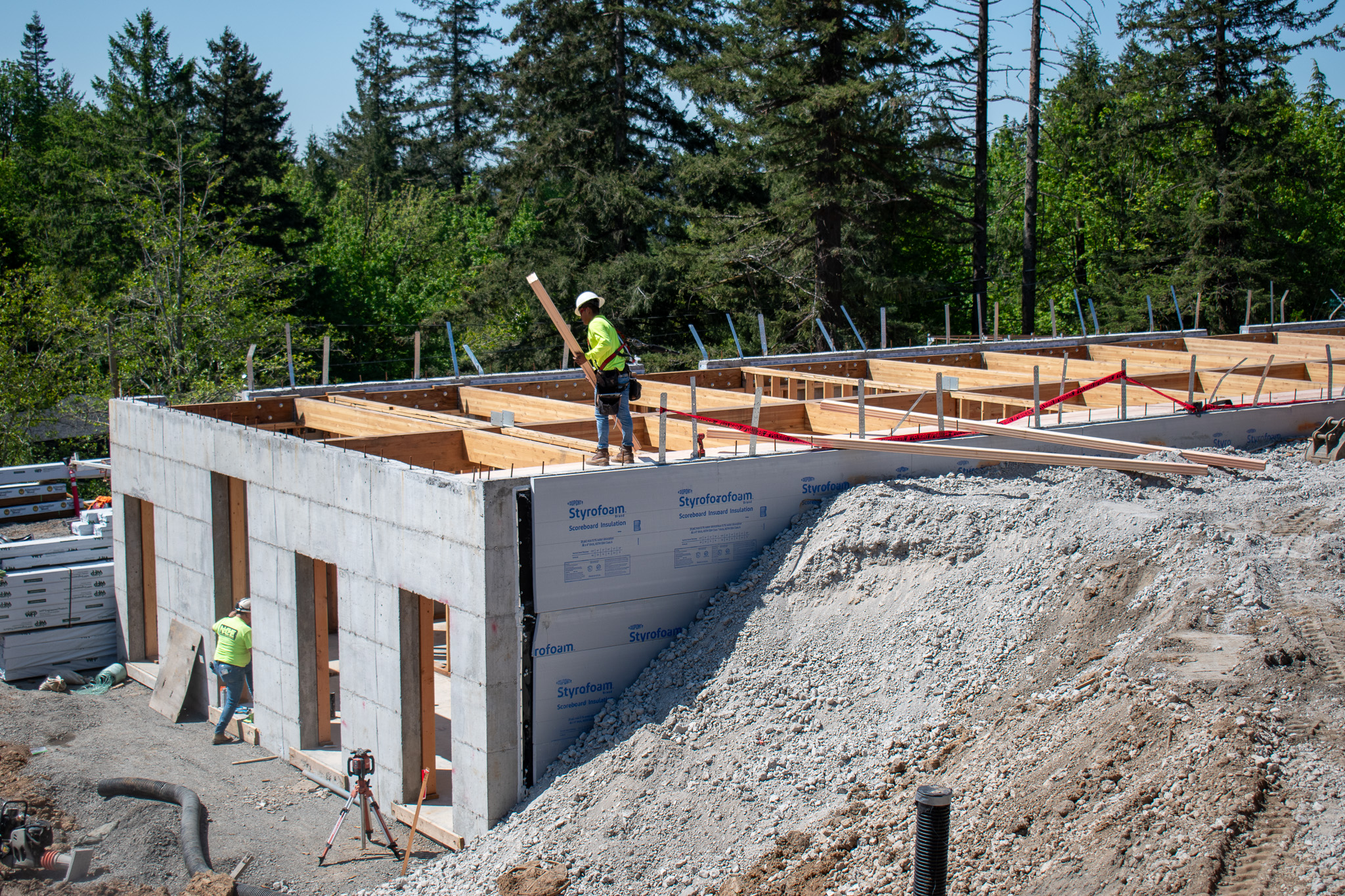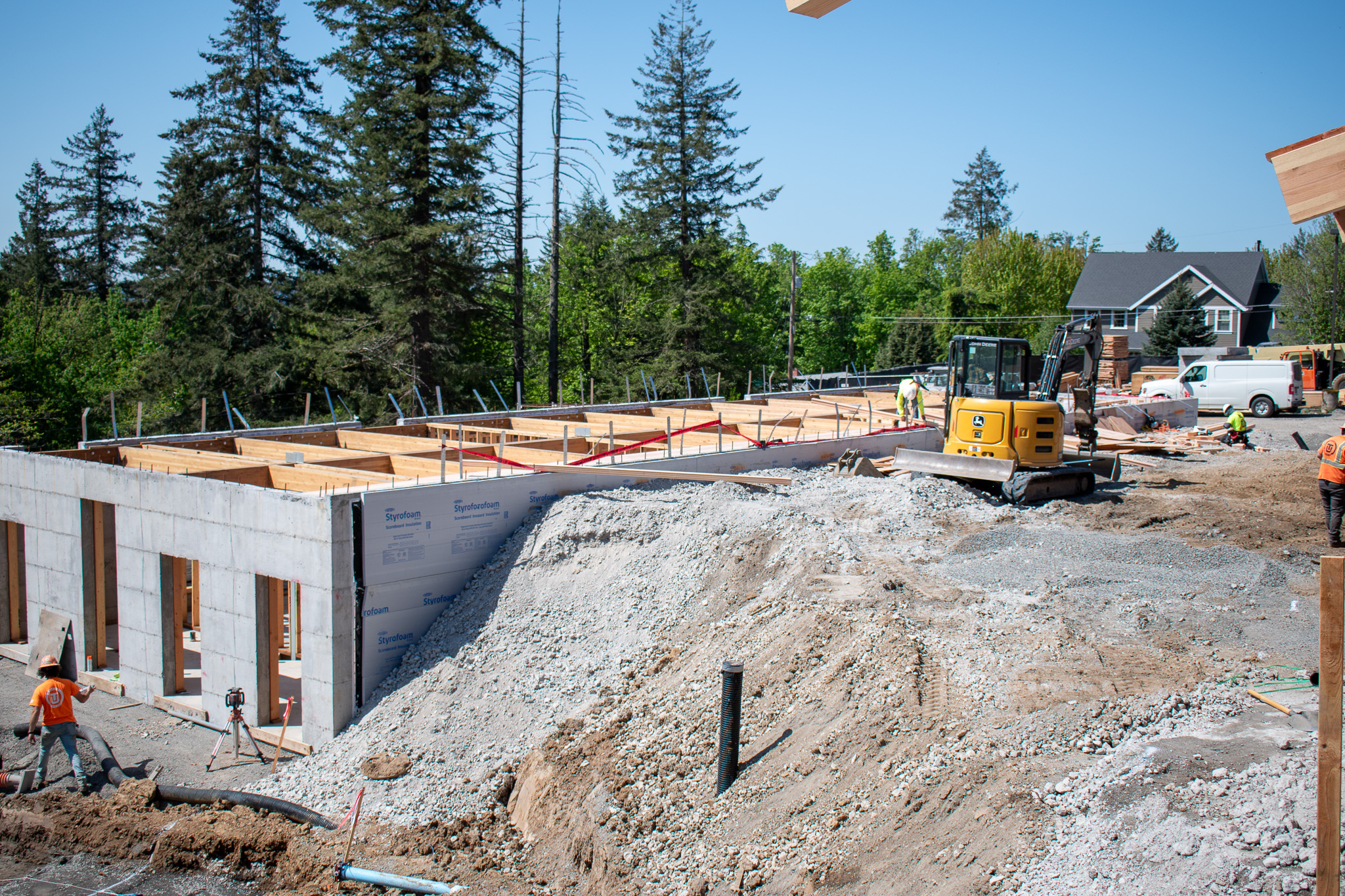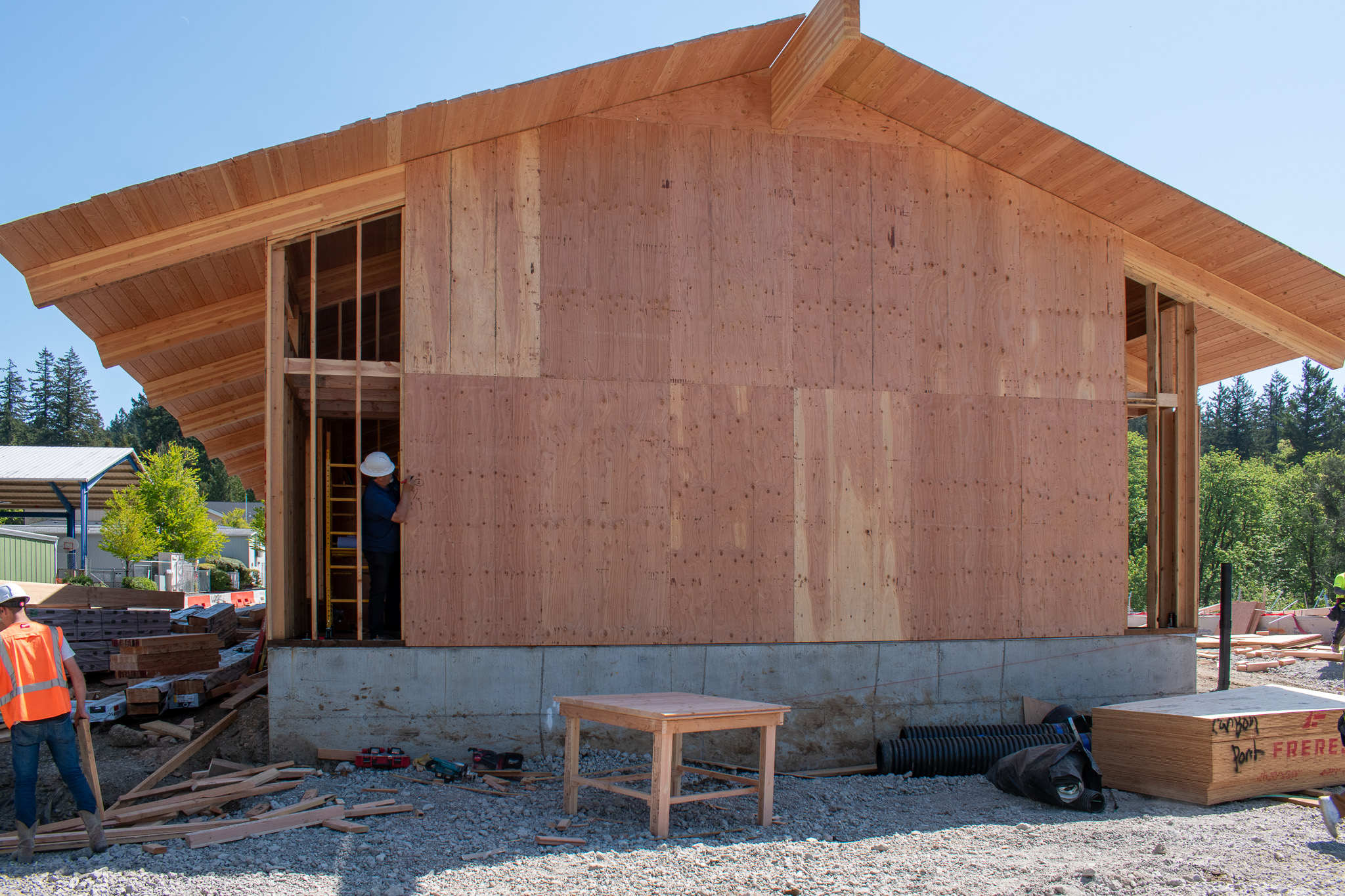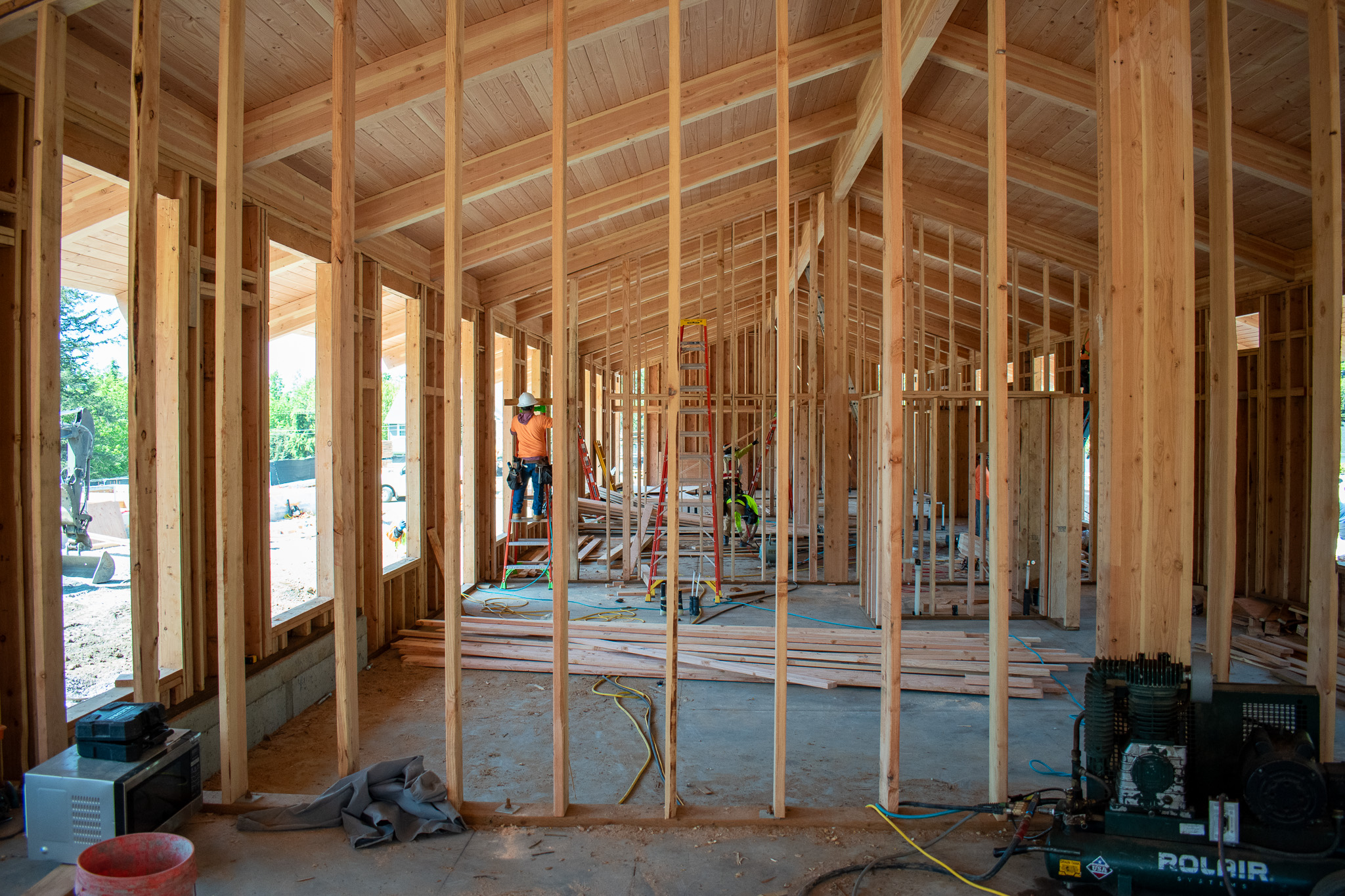 When visiting campus, it’s clear the Maternelle buildings are coming into form, and excitement is growing. Carbon Construction has completed framing for three of the four buildings and begun roof installation in two of the buildings. In addition, the crews continued working on utility systems, including plumbing, electrical, and mechanical.
