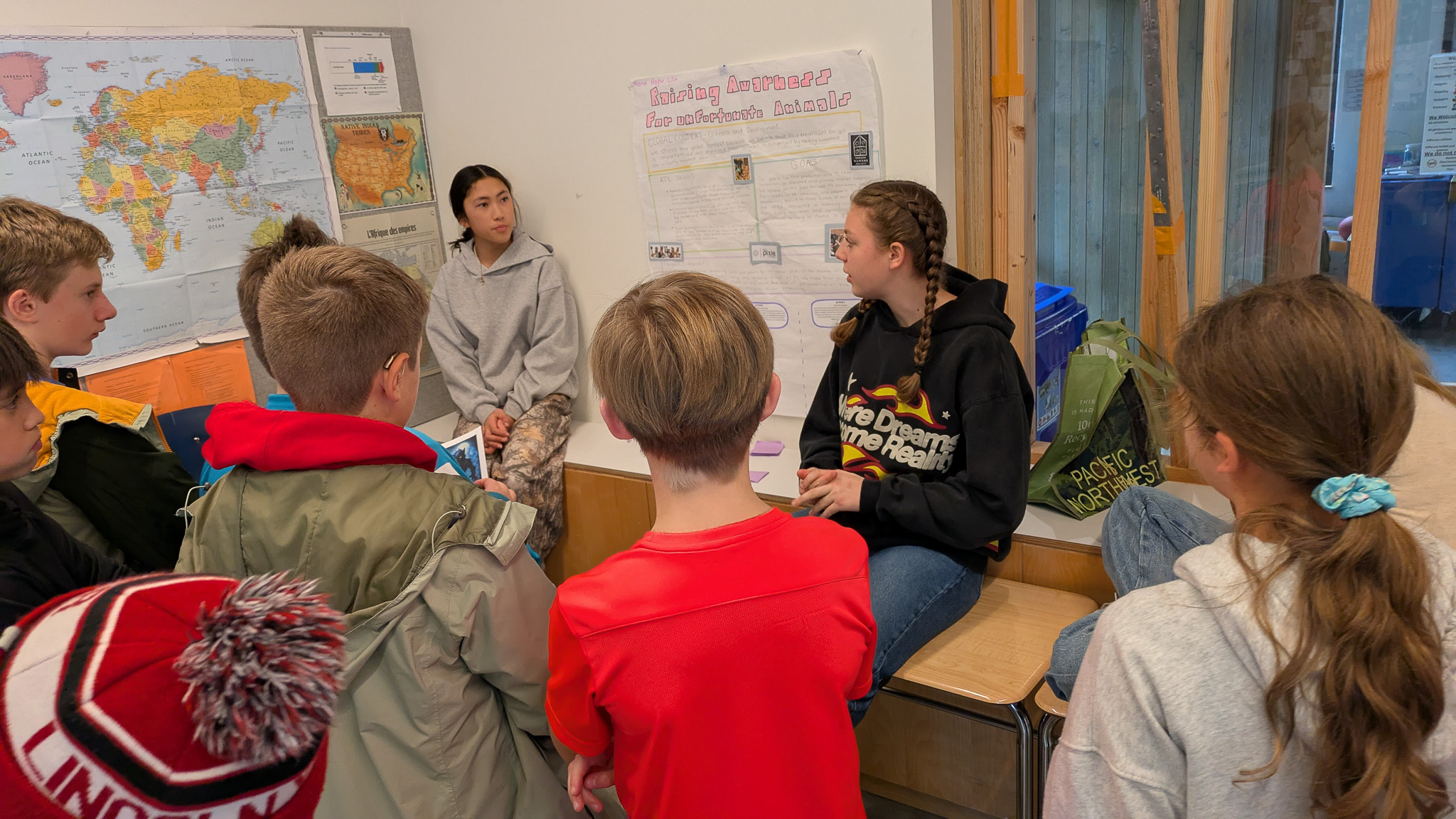 Service is part of the IB philosophy of making an impact in your own community. To cultivate this, students participated in a variety of activities centered around the theme of "service as action." The sixth graders spent time working in the forest, helping clear trails and clean the outdoor learning spaces. Another particularly powerful activity involved students learning directly from experts and representatives from the National Alliance on Mental Illness (NAMI), bringing essential, real-world knowledge right into our classrooms and fostering important conversation.