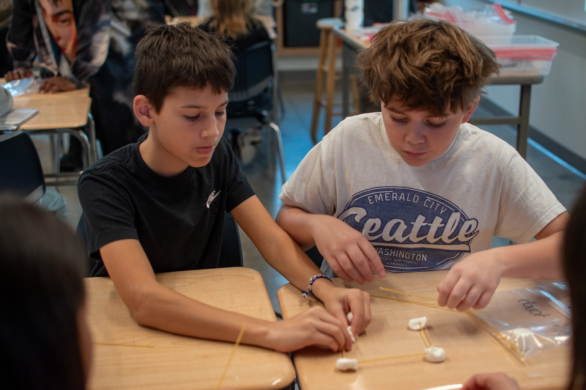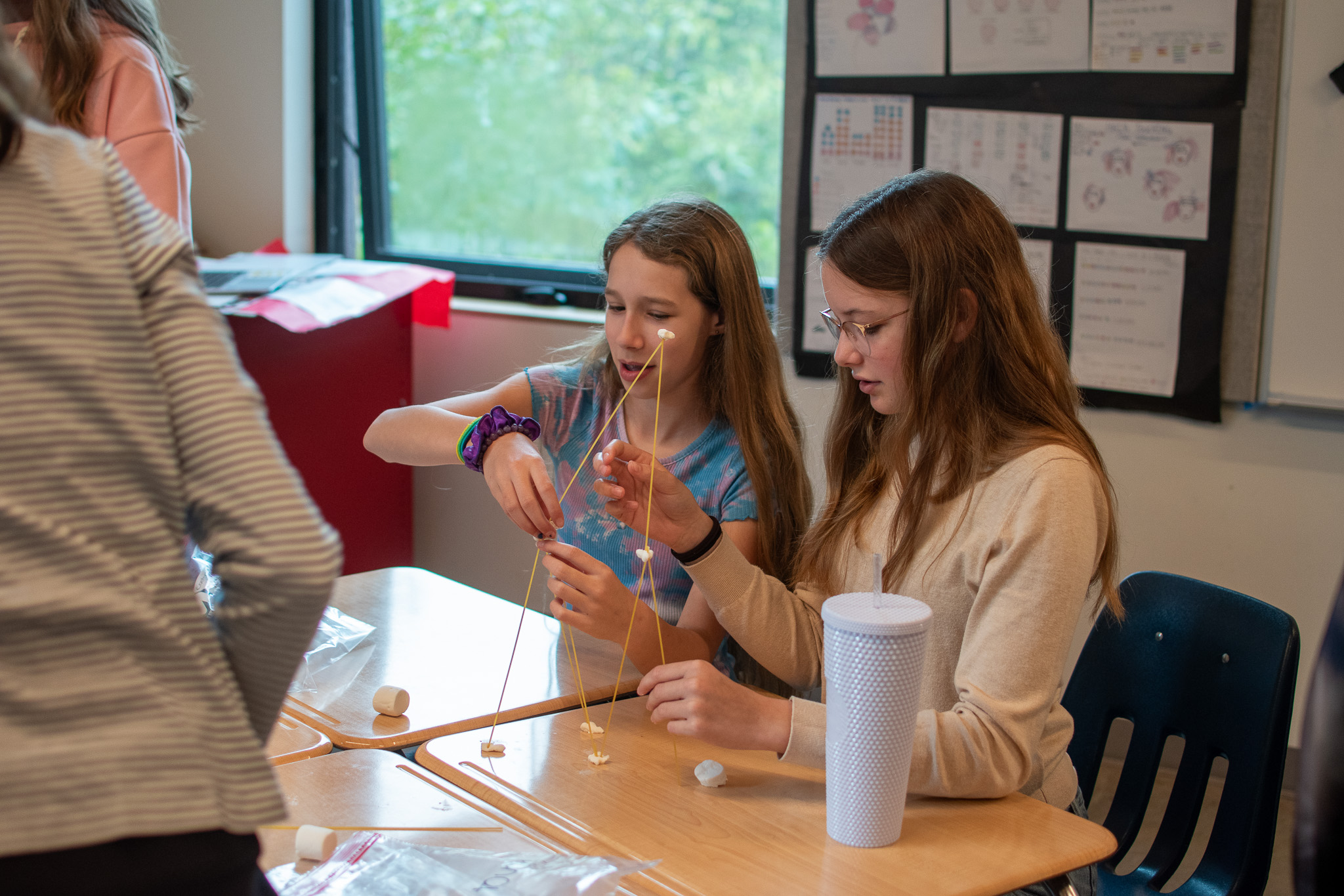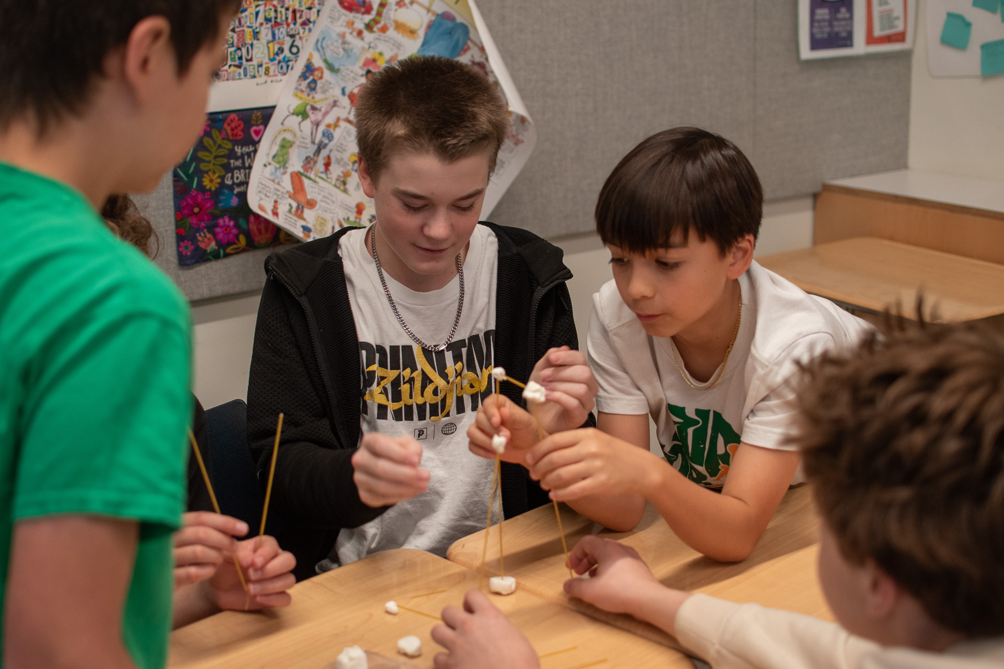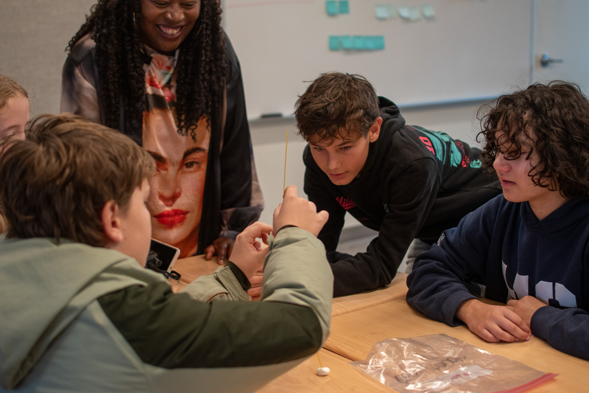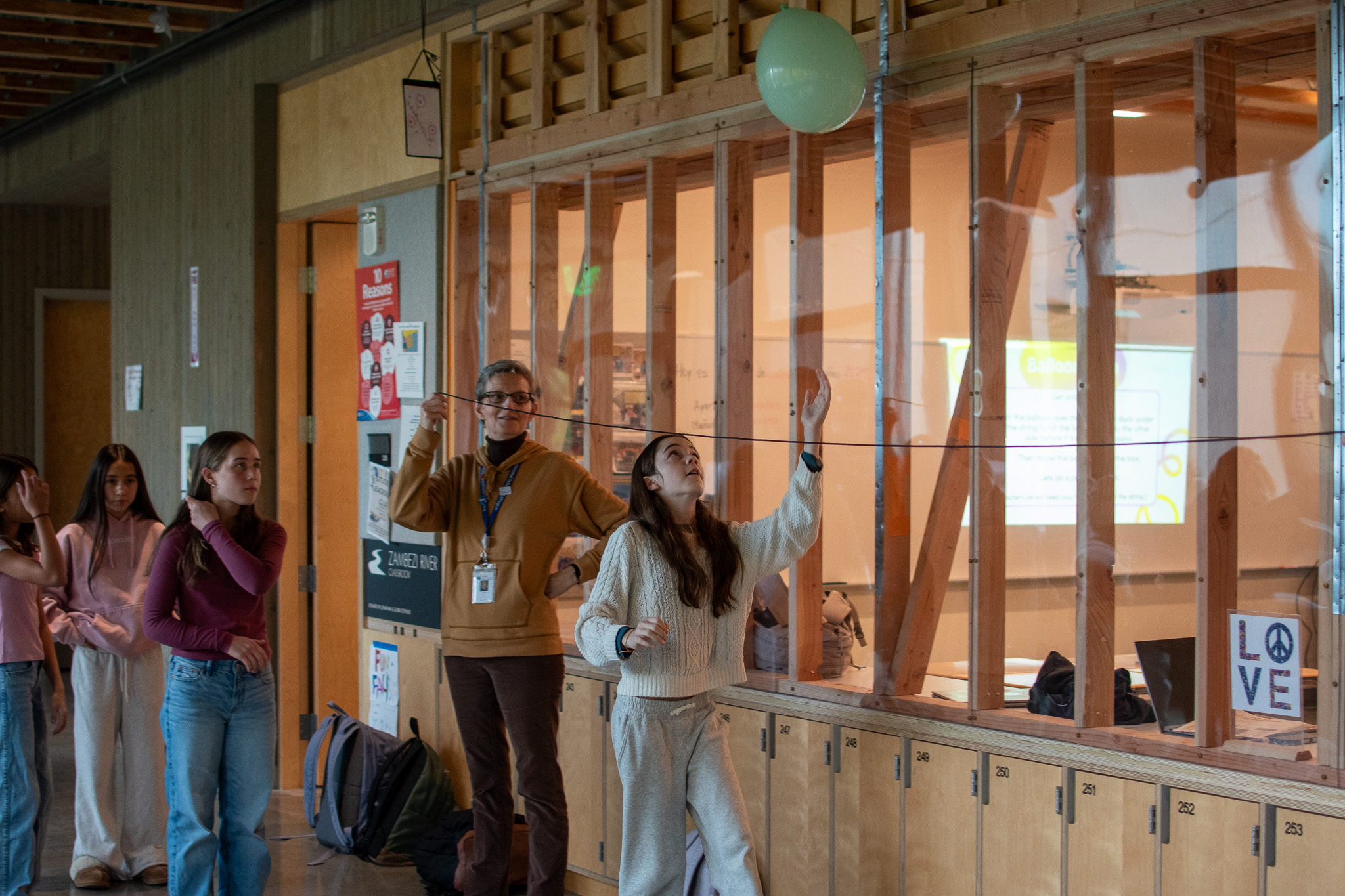 The morning's community building activities were structured around five key challenges: Lights, Camera, Respond!, a competitive response task designed to test quick wit and fast action; Spaghetti Skyscrapers, a challenge where teams used critical thinking to help build strategic inquiry; Balloon Dash, an energetic exercise requiring quick decisions and nimble, active participation; The Great Float-Off, a creative challenge that tasked students with inventing novel solutions to solve a puzzle; and Pass it Fast, helping students develop cohesion and reflection skills.